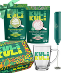 Give the gift of cozy, creamy bliss. This beautifully curated Latte Gift Box features our Matcha Moringa Superfood Latte, our Strawberries & Creme Superfood Latte, a signature Kuli Kuli mug, and a handheld milk frother - everything they need to whisk up a moment of daily wellness. Perfect for holiday gifting, self-care surprises, or anyone who deserves a delicious superfood pick-me-up.