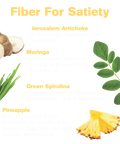 Behind that refreshing flavor is powerful satiety nutrition. Jerusalem artichoke provides a prebiotic fiber-rich boost to keep you satisfied, while Moringa and Green Spirulina deliver a concentrated burst of essential nutrients, antioxidants, and B vitamins. With Pineapple adding natural sweetness and digestive enzymes, it’s a functional blend designed to reset your day.